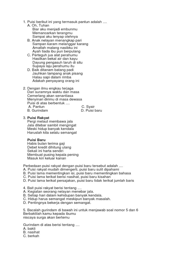 Bait puisi rakyat berisi tentang. Materi kelima yang dibahas dalam pelajaran bahasa Indonesia kelas 7 semester genap adalah materi tentang Puisi Rakyat. Adalah puisi lama Melayu yang sangat penting sebagai warisan budaya.